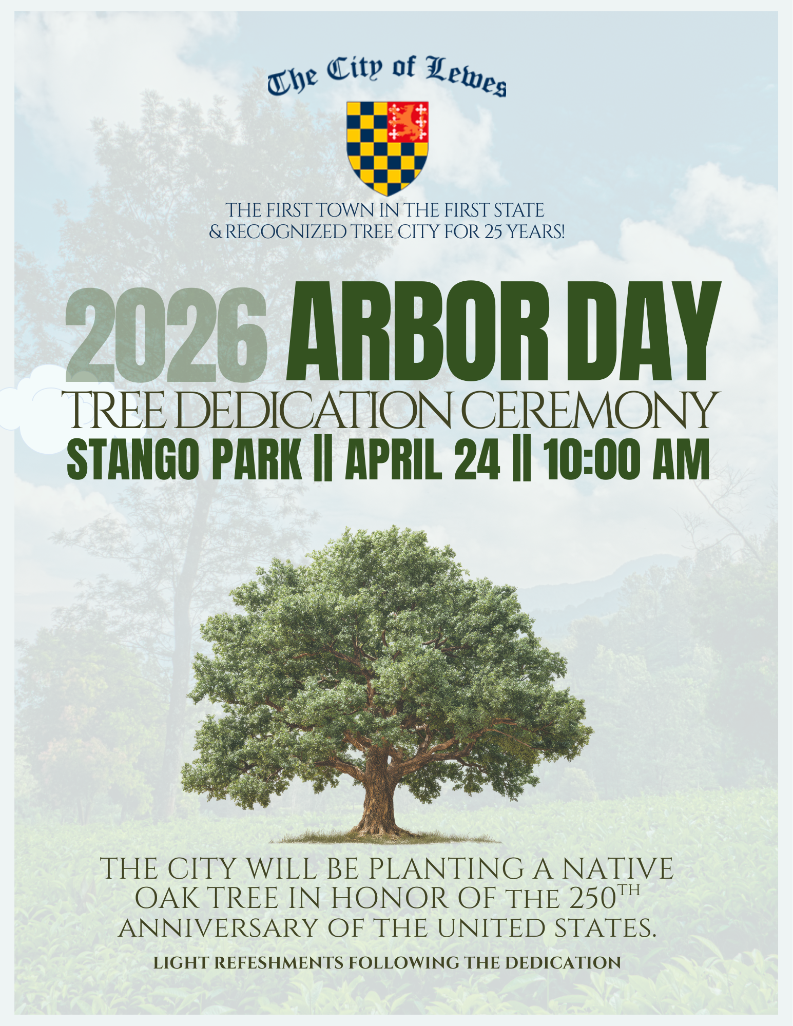 The City of Lewes will be planting a native oak tree in honor of the 250th Anniversary of the United States—a living symbol that will continue to grow for generations to come.